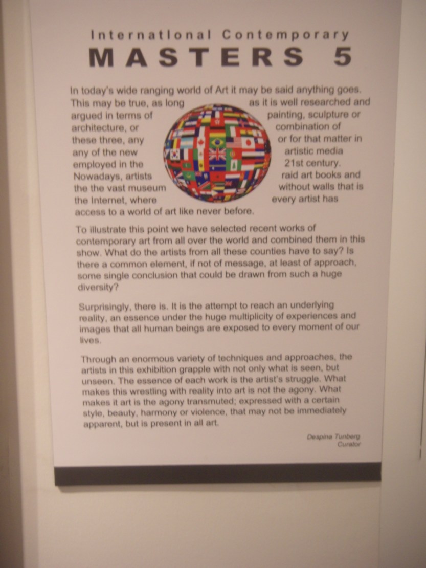 Posted on September 27, 2012 Photos from the International Contemporary Art Masters Exhibition in Las Vegas, Nevada and other stuff of interests… Share this: Click to share on X (Opens in new window) X Click to share on Facebook (Opens in new window) Facebook Click to email a link to a friend (Opens in new window) Email Click to share on Reddit (Opens in new window) Reddit Like Loading... Related