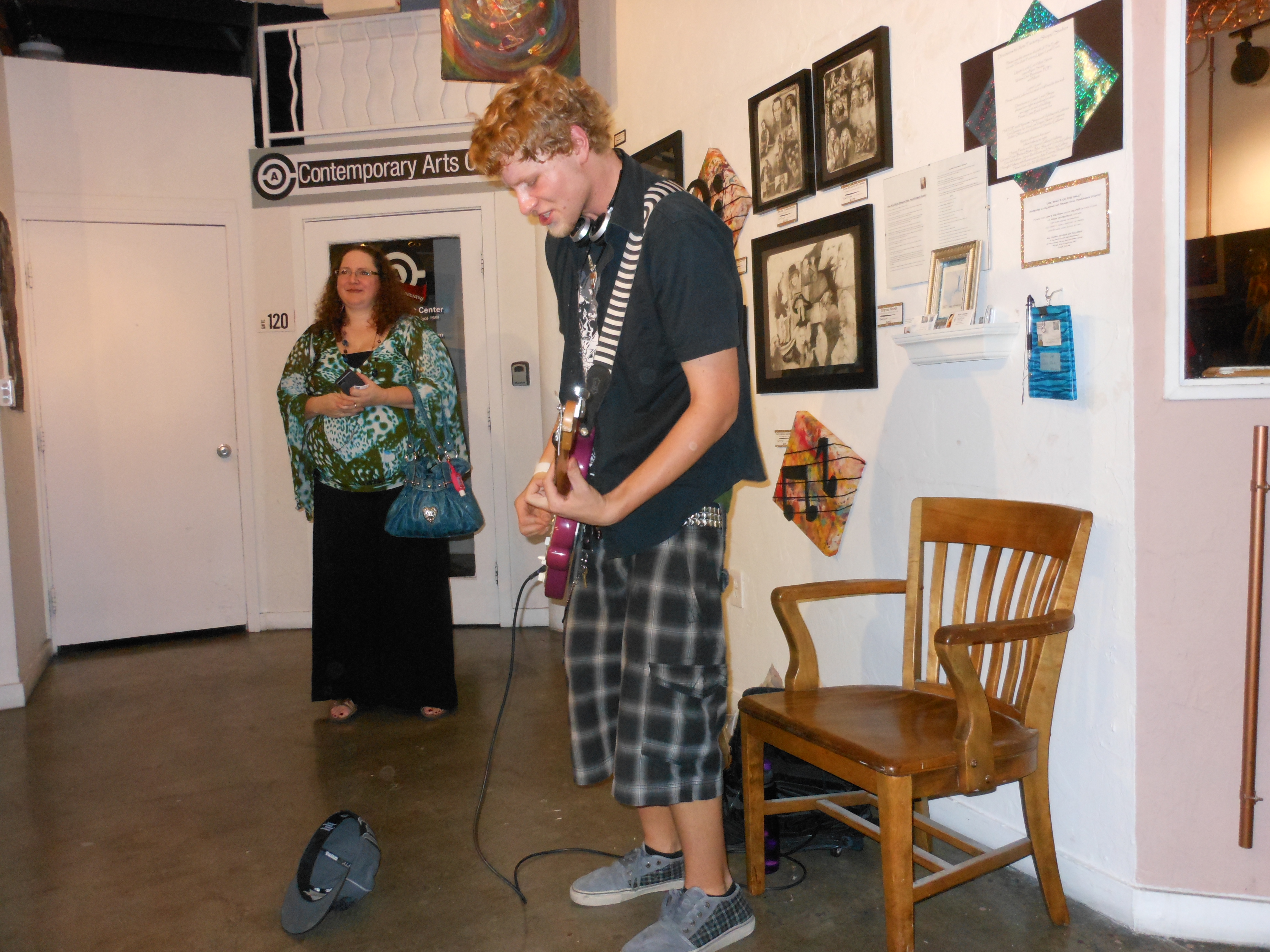 I’m back on the art track again. I’ve been distracted by the entertainment here including shows, live music, conventions, and visits from family. Las Vegas is made to be a place to keep people scattered or unfocused and entertained at the same time. Nonetheless, I was able to keep focus enough to do an art exhibition at the Arts Factory during the month of September 2013. The following photos were taken during the monthly “First Fridays,” event in September in the Arts Factory and on the streets with the downtown strip in the background.